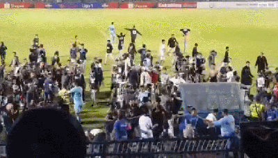 主队的球迷也是相当不满,向球场内扔起了杂物、水瓶之类。不少观众直接冲进球场内对当值的裁判组人员进行殴打辱骂,尽管一些理性的主队队员上前进行劝阻,但是仍架不住大批的球迷冲进场内;一些观众甚至抄起板凳向当值裁判组进行重击,场面相当混乱。