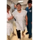 马拉多纳的右腿依然需要夹板和绷带的保护,医生表示:“我们对马拉多纳做手术为的是替换右膝盖,当他来到医院的时候,他的右膝盖情况很严重。他不仅感受到行走困难,而且会有强烈的疼痛感。”