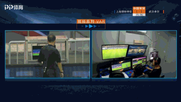 黄烨军跑向场边的另一侧观看VAR视频回放,经过观看VAR视频回放后,主裁判黄烨军判定进球有效。慢镜头显示,莫雷诺前场与艾志波争顶时并没有犯规。