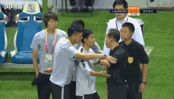 此时,主裁判黄烨军机智地选择补水时间并跑向场边向李铁口头警告,李铁与黄烨军理论,而黄烨军则向李铁示意比赛时间,并挥手召集申花球员回到场内进行比赛。