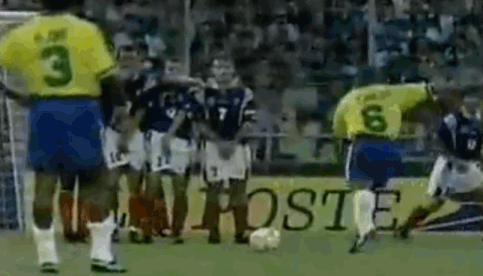 提起罗伯特-卡洛斯,球迷们的第一反应通常是他在1997年四国赛中打进的神仙任意球。卡洛斯用左脚外脚背兜出了一记大力弧线球,皮球在空中画出诡异弧线后,击中近门柱撞入网窝。