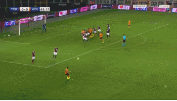 上半场唯一的进球,是都灵队送上的乌龙球。43分钟时狼队左路任意球传中,都灵后卫布雷默禁区内高高跃起,然后把球顶入了自家大门之中。