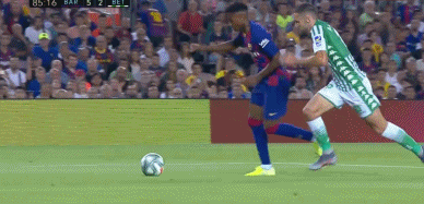 梅西、苏亚雷斯和登贝莱集体养伤,巴萨此役实在缺前锋。巴萨派了三名左脚将出任三叉戟,这一幕实属罕见。在大局已定的情况下,巴萨用菲尔波和法蒂换下拉菲尼亚和卡洛斯-佩雷斯。此时格里兹曼的左右两侧搭档,是左后卫阿尔巴和16岁的法蒂。