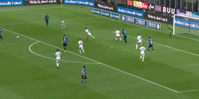第21分钟,坎德雷瓦大禁区前沿右侧起脚传中,阿萨莫阿回做身后,布罗佐维奇禁区前沿左侧接球右脚远射直挂死角,国米1-0领先!