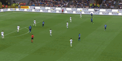 第16分钟,坎德雷瓦接森西斜传后右路传中,劳塔罗门前跃起头球弹地高出横梁。