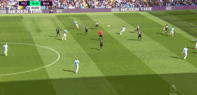 下半时,双方易边再战。第51分钟,斯特林前场左侧带球突入禁区,随后小角度右脚打门被挡出,马赫雷斯禁区右侧得球回做,德布劳内禁区外远射稍稍打偏。第55分钟,津琴科左路斜传,大卫-席尔瓦禁区弧附近拿球直塞,阿圭罗将球一领,随后带了两步来到大禁区前沿调整步伐右脚兜射破门,曼城再下一城,3-0!