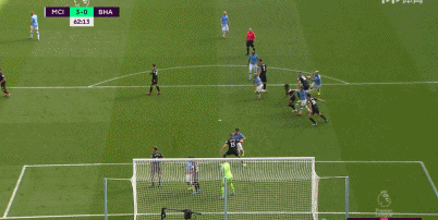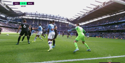 英超第4轮,曼城4-0大胜布莱顿,阿圭罗梅开二度,但他本有机会完成帽子戏法,不料一次绝佳的机会竟然被队友斯特林挡出。