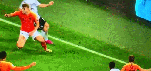 出现意外手球的,是荷兰中卫德里赫特。在自家禁区底线附近,德里赫特与舒尔茨争夺皮球。德里赫特对着舒尔茨来了个铲球,皮球弹了起来。德里赫特此时赶紧站起身来,准备继续与舒尔茨争夺位置。