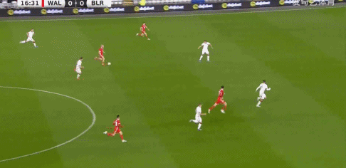 本场比赛的第17分钟,威尔士前场进攻,丹尼尔-詹姆斯在左路接到队友的分球。他带球向内侧推进,防守球员不敢上抢,且战且退。到了大禁区线上后,詹姆斯忽然起脚射门,他用右脚搓射,皮球划出了一道美妙的弧线,绕过了门将和后卫,打进了球门的远角。门将虽伸长了手臂也无能为力,目送皮球入网。
