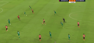 第15分钟,深圳前场左侧断球,甘超外围得球突破到弧顶外,和索萨完成踢墙配合,甘超插到小禁区前低射破门,深圳1-0国安。
