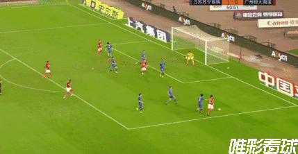 第62分钟,杨立瑜右路拿球强突下底横传到前点,韦世豪在米兰达身前抢点干扰,但没碰到,球打在米兰达身上折射进网!恒大1-1扳平苏宁。