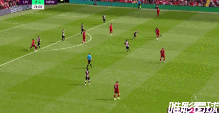 第72分钟,利物浦扩大比分,萨拉赫外围和菲尔米诺踢墙配合,萨拉赫弧顶得球突入禁区,面对门将选择挑射右侧破门,利物浦3-1纽卡斯尔。