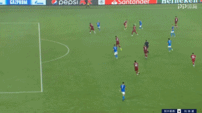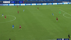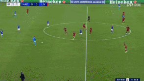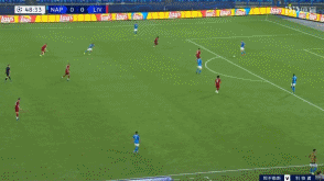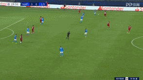 后场具备的持球与推进速度,让那不勒斯很好的破开了利物浦的高位逼抢。而且,这时候利物浦的体能已经开始下降,中场球员的限制性跑动也在下滑。那不勒斯完成向前传递之后,直接转移到远端,然后配合之后简单传中完成了射门,要不是阿德里安贡献精彩的扑救,那不勒斯早就在第50分钟实现了得分。