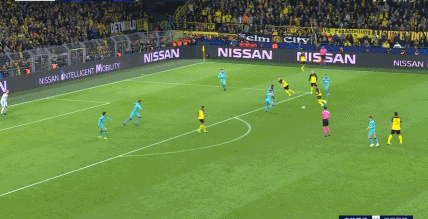 在下半场中后期,巴萨中场防守已经基本崩溃,多特总能用倒三角传球的方式,把球输送到巴萨禁区中央。在第71分钟时,罗伊斯在右侧小禁区前右脚迎球推射,但却不可思议地把球踢上了看台。在第78分钟时,罗伊斯又在小禁区右侧连续两次推射,皮球全都被特尔施特根扑出。