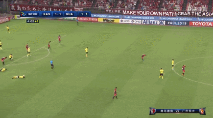 最终,鹿岛与恒大1-1战平。哨声一响,恒大4名球员躺在地上。