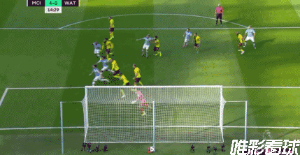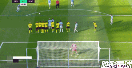 第11分钟,曼城获得禁区线上定位球,马赫雷斯主罚任意球直接攻门,皮球打到人墙身上折射入网,曼城3-0沃特福德。