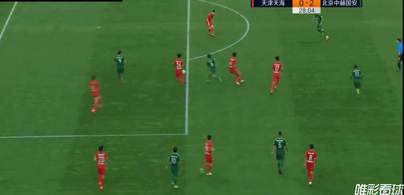 第28分钟,国安断球池忠国传球到左路,张玉宁禁区内得球晃开天海门将孙启斌,最后将球送入空门,日本主裁佐藤隆治和VAR沟通后确认进球有效,国安将比分扩大为2-0。