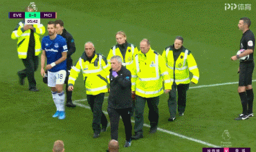 第5分钟,埃弗顿遭遇重创,斯特林前场左路弧线球挑传,皮球直接打中沃尔科特头部,后者因伤无法坚持被伊沃比替换下场。