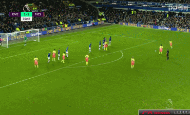 第66分钟,阿圭罗登场换下热苏斯。第71分钟,德布劳内被米纳绊倒在地,曼城获得禁区弧顶右侧任意球,马赫雷斯主罚直接左脚爆射,皮球穿过人墙直奔球门死角,曼城再度领先,2-1!第76分钟,西古德森中路直塞,勒温插上形成单刀,小禁区前沿右脚低射被埃德森扑出。