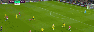 第44分钟,拉什福德回敲,麦克托米奈禁区弧顶起脚远射,皮球直钻网窝死角。面对对手的爆射,扎卡竟然低头躲开....