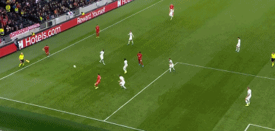 上半场临近结束时,场上的比分为1-1。就在人们以为双方将带着平局进入休息室的时候,莱万站了出来。第45分钟,莱万来到前场左侧活动。接到队友的传球后,他顺势一个非常漂亮的脚后跟挑球,直接将球挑到了防守球员的身后。防守他的后卫都懵了,在原地目送莱万杀入禁区。