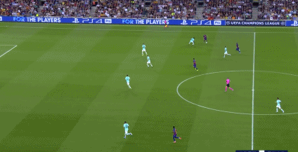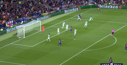 在下半场比赛中,梅西慢慢找回了状态,巴萨也开始变得重新具有威慑力。巴萨的第一个进球,就来自于梅西的策动。梅西禁区右侧底线回敲,他的存在使得国米防线大幅度回收,这使得禁区线附近成为“空城”。比达尔轻松传中,苏亚雷斯轻松凌空斩。