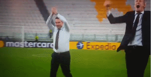 去年欧冠淘汰尤文后,阿贾克斯总经理范德萨和技术总监奥维马斯庆祝,巴萨名宿还表演了“肚皮滑行”