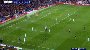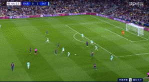格列兹曼与苏亚雷斯较多的出现在中路,虽然可以压制国米的三名后卫,但是无人拉边进行纵深吸引去压制国米边翼卫的情况下,国米可以通过边翼卫回收或是前提实现防线1人上抢与中场围剿梅西的局面。这时候,梅西不断陷入丢球之中。即便是依靠个人能力完成了突破再进行分边或是与锋线上的苏亚雷斯或格列兹曼进行配合,国米的防线也落位完毕,巴萨打不开中路与肋部就是正常的。