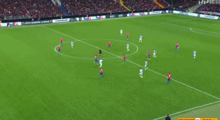 本场比赛,武磊首发出场。第64分钟,武磊打破了此前9场正式比赛的进球荒。门将洛佩斯大脚球到前场,巴尔加斯左侧拿球瞬间,武磊已经在高速启动,巴尔加斯奔袭中送出精准斜塞,武磊禁区中路跟进到位形成单刀球,直接面对门将,右脚推射破门,西班牙人1-0领先,武磊就此成为第一位在欧战正赛进球的中国球员。