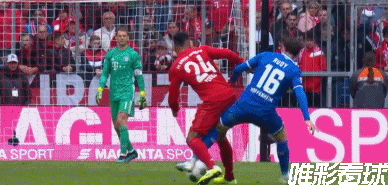 第4分钟,霍芬海姆快速反击,比博中场直塞对方防线身后,阿达米扬单刀突入禁区,起脚劲射被博阿滕伸脚挡出底线,错失打破僵局的绝对机会。