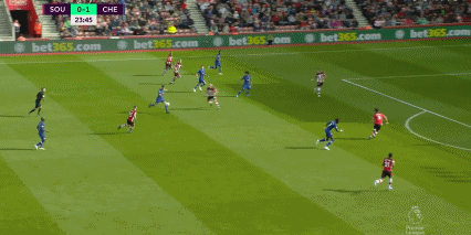 第49分钟,威廉前场中路斜塞左侧,奥多伊禁区左侧的小角度推射被冈恩用脚挡出。切尔西右路角球传中,祖马的头球攻门,球弹地后偏出左门柱。第57分钟,坎特本方禁区弧内撞倒雷蒙德。沃德-普劳斯的任意球打出一记弧线绕过人墙,擦着横梁出底线。第60分钟,芒特左路传中,亚布拉罕点球点附近跟进推射,球被冈恩倒地抱住。第78分钟,芒特前场中路送出直塞,奥多伊禁区左侧左脚推射被回防是圣徒后卫挡出。1分钟后,沃德-普劳斯右路传中,因斯的甩头攻门稍偏出右门柱。