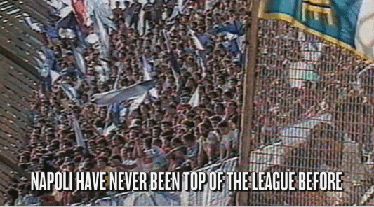 那不勒斯的街头陷入了瘫痪,狂欢持续了2个月,人们在街头挥舞着那不勒斯的蓝色旗帜,燃放着冷焰火,那不勒斯极端球迷吉纳罗骑着摩托带着妻子加入庆祝人群,路过一片墓地时,吉纳罗看到墓地外墙的横幅上写到:“你们不知道你们错过了什么。”
