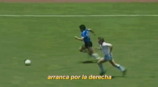 1986年,马拉多纳在阿根廷和英格兰的比赛中打进了2个球,第一球他的上帝之手骗过裁判,将球拍进了球门;第二球他长途奔袭过掉5名防守球员,最后晃过裁判将球送入空门。