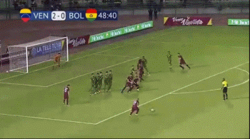 在上半场终盘阶段,委内瑞拉连续打进两球。38分钟时奥特罗右侧远距离任意球传中,埃雷拉后点头球破门。