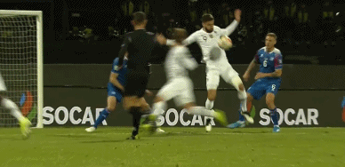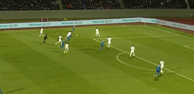 第76分钟,冰岛大禁区外右脚远射,皮球高出横梁。