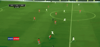 在第95分钟时,扎哈靠个人能力将比分锁定为3-1。在禁区左侧,扎哈纵向突破后左脚低射,皮球贴地滚入球门远端死角。