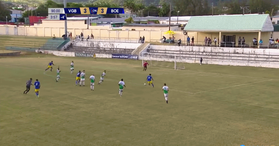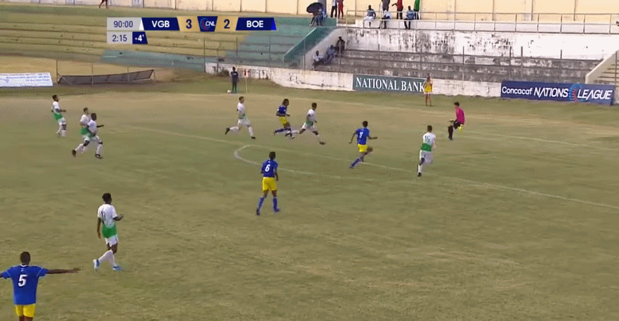 本场比赛是中北美洲及加勒比国家联赛B组第4轮的一场比赛,英属维京群岛主场迎战博内尔岛。博内尔岛在上半场25分钟率先打破记录,但是英属维京群岛在上半场补时阶段扳平;下半场,英属维京群岛连进2球将比分反超为3-1,而这时比赛时间已经到了第84分钟。