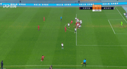 第25分钟,天海拿到一个前场右侧任意球机会,雷纳尔迪尼奥任意球传到禁区内,拼抢张成林将球碰进网窝,天海2-0卓尔!