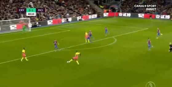 第21分钟,京多安远射被挡。第26分钟,贝尔纳多-席尔瓦右路斜传,坎塞洛禁区外右侧大脚轰门被亨内斯没收。第32分钟,扎哈禁区弧顶附近被放倒在地,水晶宫获得任意球,米利沃耶维奇主罚直接打门打在人墙上。第39分钟,场上僵局终于被打破,费尔南迪尼奥中路分边,贝尔纳多-席尔瓦挑传禁区,热苏斯飞身头槌入网,曼城领先,1-0!第41分钟,斯特林挑传,大卫-席尔瓦小禁区前沿左侧不停球直接左脚抽射破门,曼城扩大比分,2-0!半场战罢,曼城2-0暂时领先水晶宫。