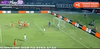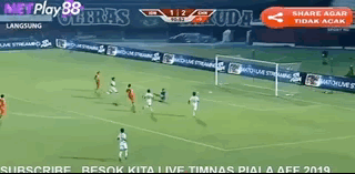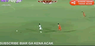 第74分钟,印尼国青队通过反击机会,边路突破到禁区内,横穿到中路,门前挑射破门,扳平比分,1-1!