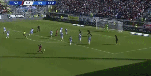意甲第20轮,卡利亚里主场迎战斯帕尔。第9分钟,今夏从国米租借加盟卡利亚里的纳英戈兰,禁区外胸部停球,凌空抽出一脚世界波,帮助球队1-0领先。