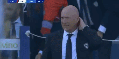 目睹这粒惊为天人的进球,卡利亚里主帅马兰也露出了不可思议的表情。