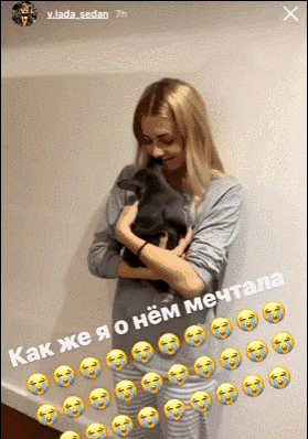 视频中,津琴科抱着一只黑色的法国斗牛犬送给丹塞,丹塞立即感动流泪。