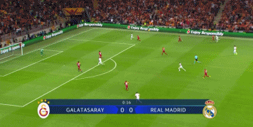 上半场结束,皇马暂时客场1-0领先加拉塔萨雷。