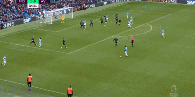 第65分钟,德布劳内前场左侧起球传中,皮球弹地后飞入球门,阿斯顿维拉球员投诉处于越位位置的斯特林碰到了皮球,当值主裁通过VAR判定进球有效,曼城扩大比分,2-0!