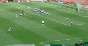 这个进球,不禁令人联想到了02世界杯中的神奇一幕。在巴西对阵英格兰时,小罗在同一位置任意球吊射,皮球越过希曼指尖后坠入远角。在整整17年后,余基盛完成了对小罗的复刻。