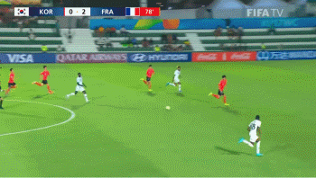 在上半场中,韩国就以0-2的比分落后于法国。17分钟时利哈吉直传,效力于巴黎圣日耳曼的穆桑加禁区右侧单刀低射破门。42分钟时法国角球制造混乱,艾哈迈德中路分球,彭贝莱禁区左侧右脚兜射远角破门。