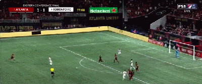 亚特兰大联在5分钟后本有扩大比分的机会。多伦多FC的麦尔尔布拉德利在禁区内将冈萨洛-马丁内斯从后放倒,裁判吹罚点球。但是本赛季打入28个进球的队内射手王约瑟夫-马丁内斯的点球被多伦多FC门将扑出,比分维持在亚特兰大联1-0领先。