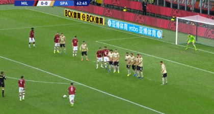 下半场开始后,米兰加强了攻势。第46分钟,特奥打进一球,但因越位在先,进球无效。第61分钟,皮亚特克在大禁区前被放倒,米兰赢得位置不错的任意球机会。刚刚替补登场的苏索尝试任意球直接打门,皮球越过人墙,直接钻进斯帕尔网窝,1-0,米兰终于在主场打破了场上僵局。