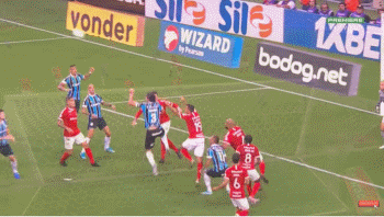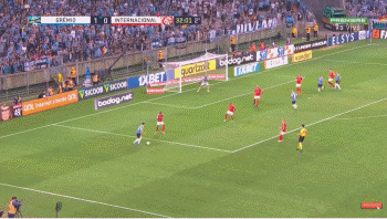 在第34分钟时,格雷米奥打破僵局。阿利森左路45度任意球传中,中卫杰罗梅尔小禁区前高高跃起,他用前额重重地把球砸入对方网窝。